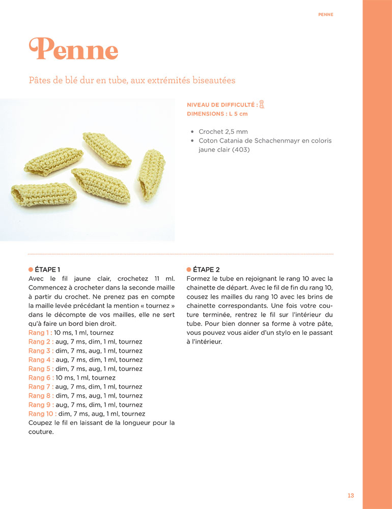 Toute la richesse de la gastronomie italienne est réunie dans cet ouvrage, vous permettant de composer un véritable festin au crochet. Comme au restaurant, laissez-vous tenter par :