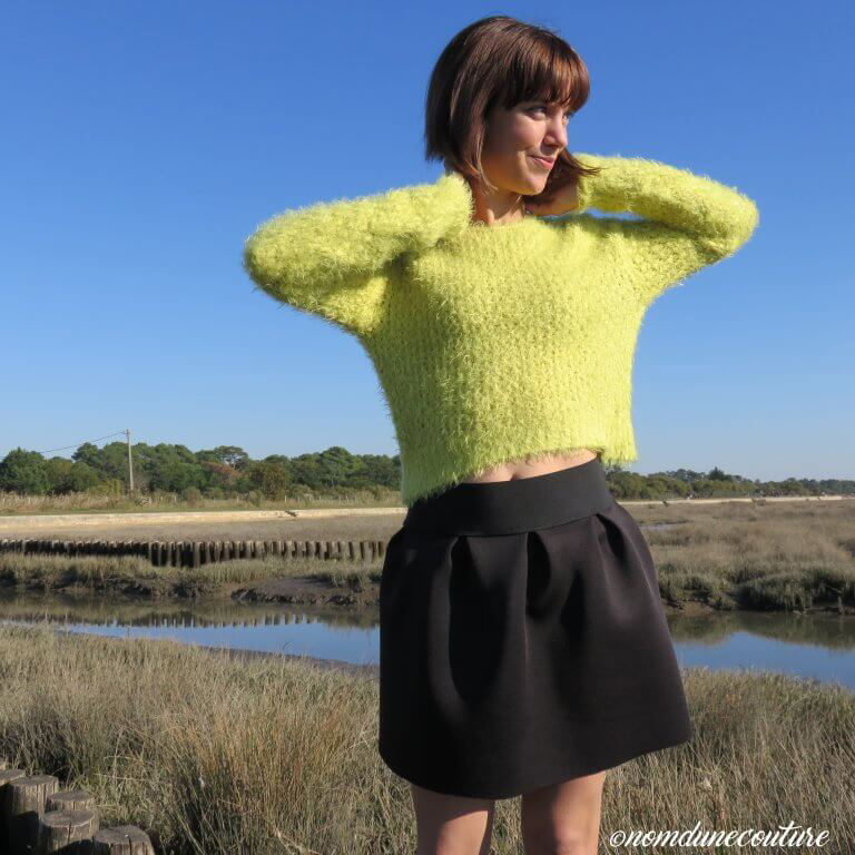 Un jour sa mère lui a récupéré une vieille machine à coudre Mobipoint et au fil des années, seuls les ourlets de pantalons voire les housses de coussin passaient sous son pied-de-biche. Le déclic couture n’était pas encore au rendez-vous. Et puis en 2015, sa mère lui a montré deux jolis petits tops qu’elle venait de réaliser pour les fêtes de fin d’année. « Elle m’a expliqué comment elle avait fait, et m’a dit que c’était tout simple. Ni une ni deux, j’ai filé dans un magasin de tissu et je me suis trouvée un joli simili-cuir noir à trous. Un peu bizarre de commencer par du simili-cuir, mais bon que voulez-vous, j’avais flashé dessus. Il faut dire qu’une fois dans le magasin, j’étais un peu perdue au milieu de tous ces rouleaux… Bref, j’ai pris un tee-shirt, je l’ai reporté sur mon tissu, je l’ai coupé et piqué ensuite avec ma vieille machine, et là bizarrement, c’était nickel ! Ça tombait pile et le rendu me plaisait bien. Je me suis dit : Tiens c’est sympa ce truc-là ?! Et de fil en aiguille j’ai regardé des tutos sur internet, je me suis documentée sur les différentes techniques, etc. »