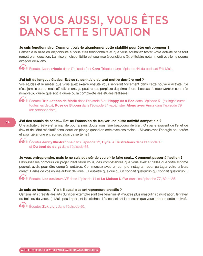 Vous êtes fan de DIY et vous rêvez de vivre de votre passion ? Devenir votre propre patron, ça vous tente ? Ne cherchez plus, Mélanie Seynat, fondatrice du podcast Fait Main a la solution ! Elle vous explique comment monter votre propre entreprise et répond à toutes les questions que vous vous posez ou que vous n’allez pas tarder à vous poser. Découvrez un guide complet, jalonné de photos et de témoignages de professionnels qui ont déjà sauté le pas !