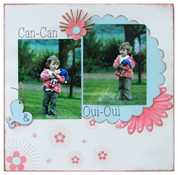 Aujourd’hui Sabine continue à apprendre, et à visiter chaque jour de nombreux blogs, notamment aux U.S.A. où émergent sans cesse de nouvelles techniques, de nouveaux matériaux. « Mon scrap a beaucoup évolué, je le qualifierais de mélange de romantisme et modernité. Romantisme pour les fleurs, les dentelles, les tons tendres des pages “filles” ou “vintage” ; modernité pour des pages plus graphiques ou incluant des “bidouillages”, avec même l’une ou l’autre tentative vers le free-style… Alterner les styles, m’essayer à de nouvelles approches, restent pour moi le plus grand des plaisirs ! »