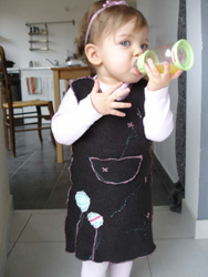 « Je me souviens que toute petite déjà, je fabriquais des robes à mes poupées avec des chutes de tissus. Mais j’ai vraiment commencé à coudre suite à mon licenciement économique en été 2006. J’ai d’abord commencé par le travail de la feutrine. C’est d’ailleurs l’une de mes techniques préférées! J’aime le matériau en lui-même, sa chaleur et sa douceur. Il y a une quantité de couleurs incroyables, et c’est tellement facile à travailler! On peut en faire partout! »