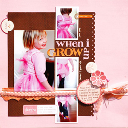 Habitant Carmel, en Indiana, Kimber McGray scrappe depuis environ 3 ans et demi. « Une amie m’a fait un mini-album photo scrappé vraiment mignon pour le deuxième anniversaire de mon fils. C’est ainsi que j’ai découvert ce loisir créatif. Mon amie avait envie de me faire essayer le scrapbooking, j’ai résisté pendant une année. Finalement j’ai cédé et commencé à scrapper ce qu’elle me donnait comme fournitures. J’ai été accrochée immédiatement. Cela a été une grande révélation créatrice pour moi pour parler de ma vie de tous les jours. »